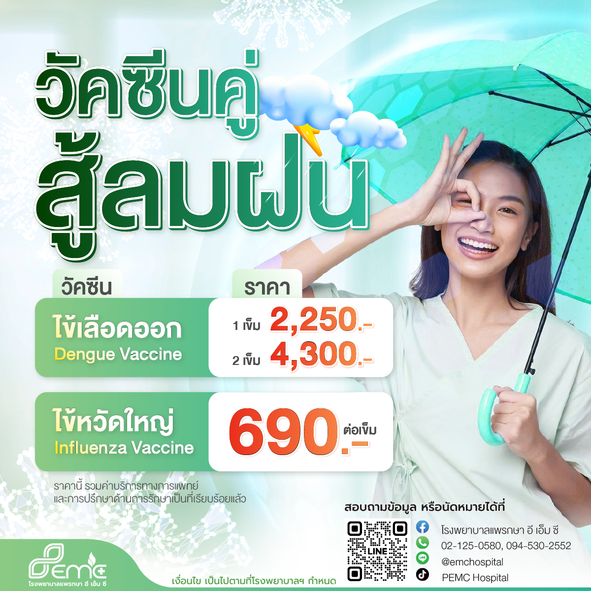 📞 รีบจองก่อนเต็ม! สุขภาพดีมีได้ แค่กล้าป้องกัน ☂️ ทั้งสองโรคนี้ “ไม่มีทางลัด” หากเป็นแล้วต้องรักษาแบบประคับประคอง และผลที่ตามมาคือ “โรคแทรกซ้อน” อาจส่งผลต่อสุขภาพในระยะยาว