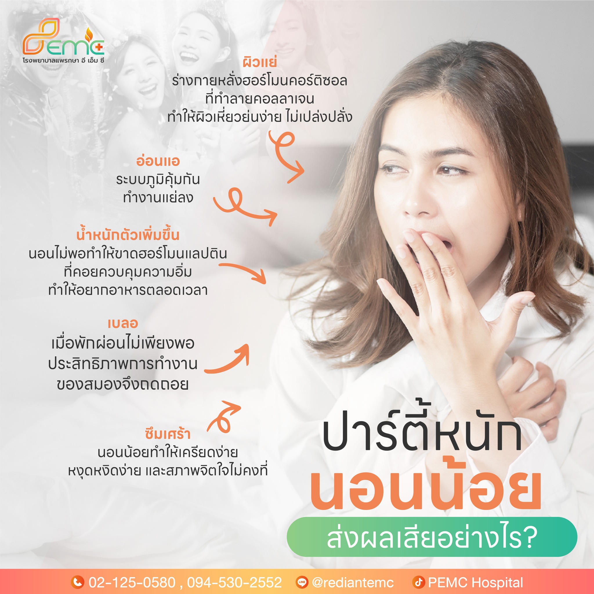 ปาร์ตี้หนัก ฉลองต่อเนื่องกันหลายคืน ทำให้ร่างกายได้รับการพักผ่อนน้อย จนส่งผลเสียต่อสุขภาพอย่างมาก