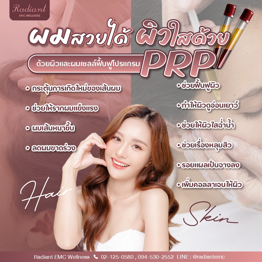 PRP (PLATELET RICH PLASMA) คือการนำส่วนหนึ่งของเลือดตัวเองมาปั่นแยกเลือด และคัดเฉพาะเลือดที่มีเกล็ดเลือด และ Growth factor เข้มข้น โดยเกล็ดเลือดที่ได้จากการทำ PRP จะมีหน้าที่ในการรักษาเนื้อเยื่อและซ่อมแซมผิวที่เสื่อมสภาพ ซึ่งเต็มไปด้วย Growth Factor จะช่วยกระตุ้นการสร้างเนื้อเยื่อ