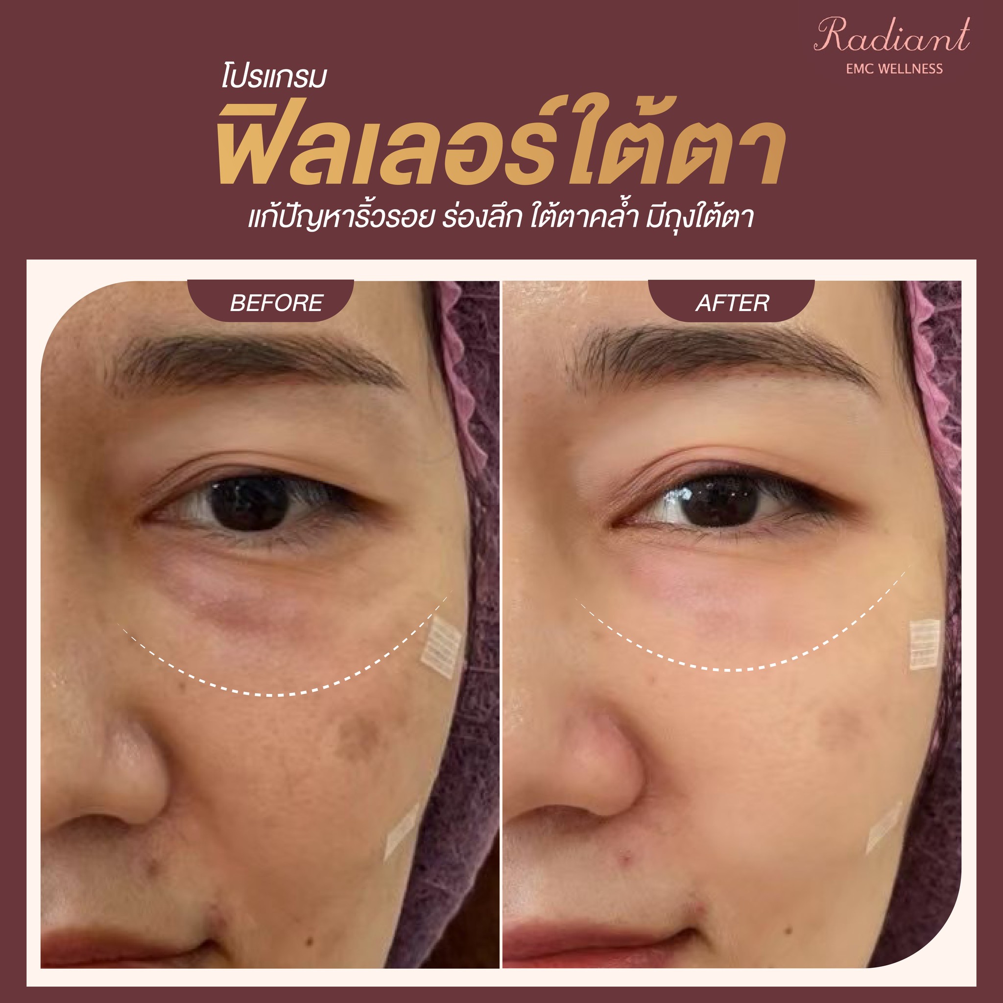 ฟิลเลอร์จะช่วยเติมเต็มผิวบริเวณใต้ตาให้เรียบเนียน อิ่มฟูและช่วยกระตุ้นการสร้างคอลลาเจนใต้ชั้นผิว